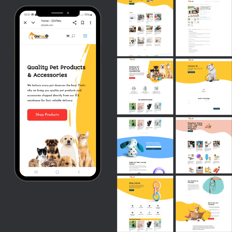 Online Solutions Lab handled the full setup of GhiPets’ online store from start to finish. We designed a custom logo that reflects the brand’s fun and pet-loving personality, and built a complete WooCommerce website featuring over 200 products. Our work included configuring all product categories, variations, and pricing; integrating secure payment gateways; setting up automated email notifications; and ensuring a smooth, user-friendly shopping experience. From branding to launch, every element was professionally managed to create a fully functional, visually engaging, and conversion-ready eCommerce store